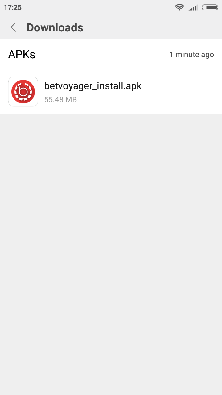 Find the downloaded file betvoyager_install.apk in the folder: Explorer->Downloads (see screenshots on how to find it)