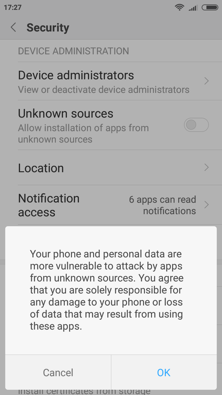 - If a warning window appears, follow through by clicking Ok and then Install